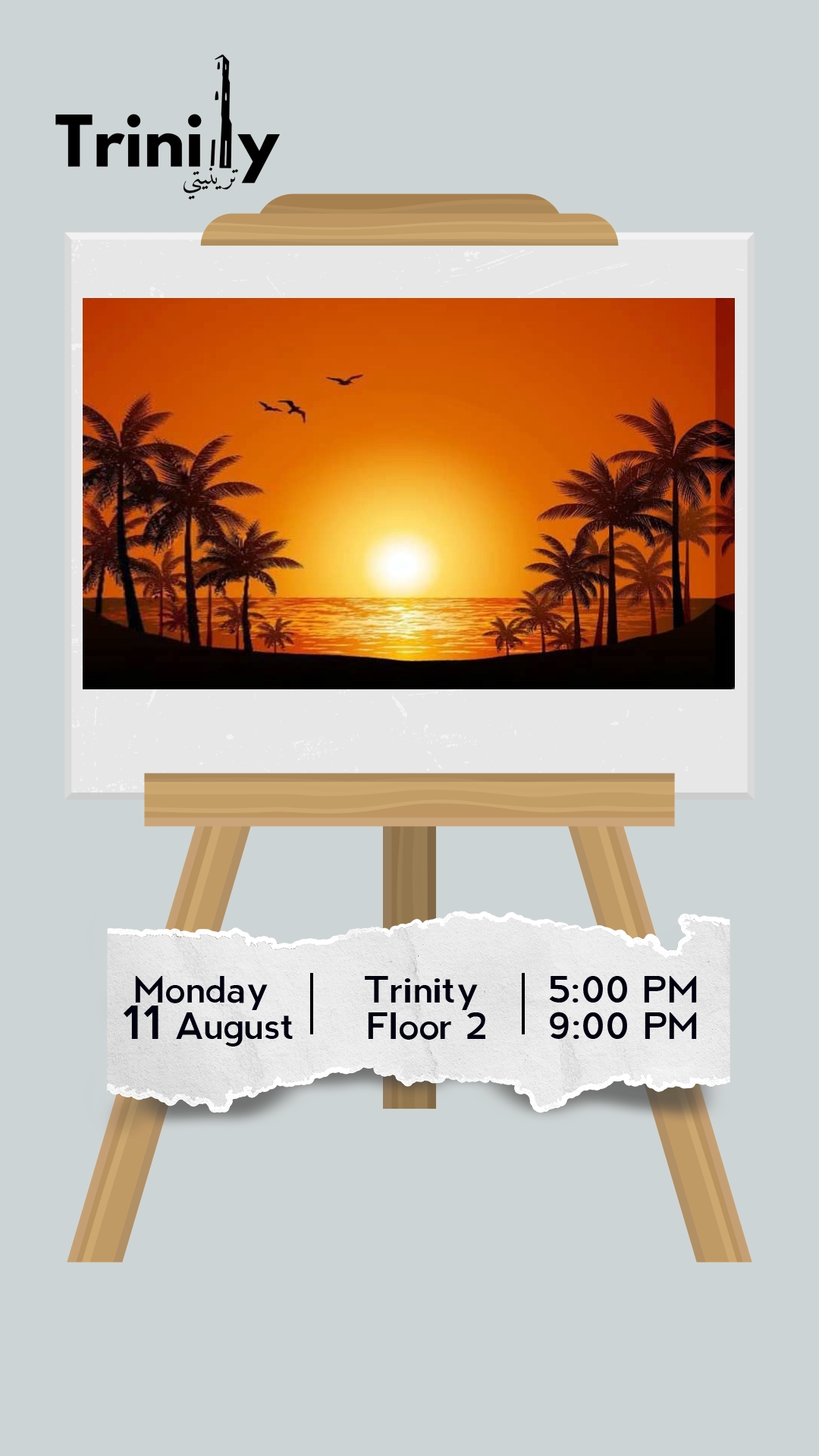 Date Monday, 11Aug25 Sessions 3 Time 11am to 3pm Location Trinity – 2nd floor Fees 300 L.E per lecture or 1000 L.E for all We have an exciting opportunity for you at Trinity with our Workshop: Paint Your world with Amanda Sami! – Workshop Start Dates: Mondays – August 11, 18, 25 & September 1
