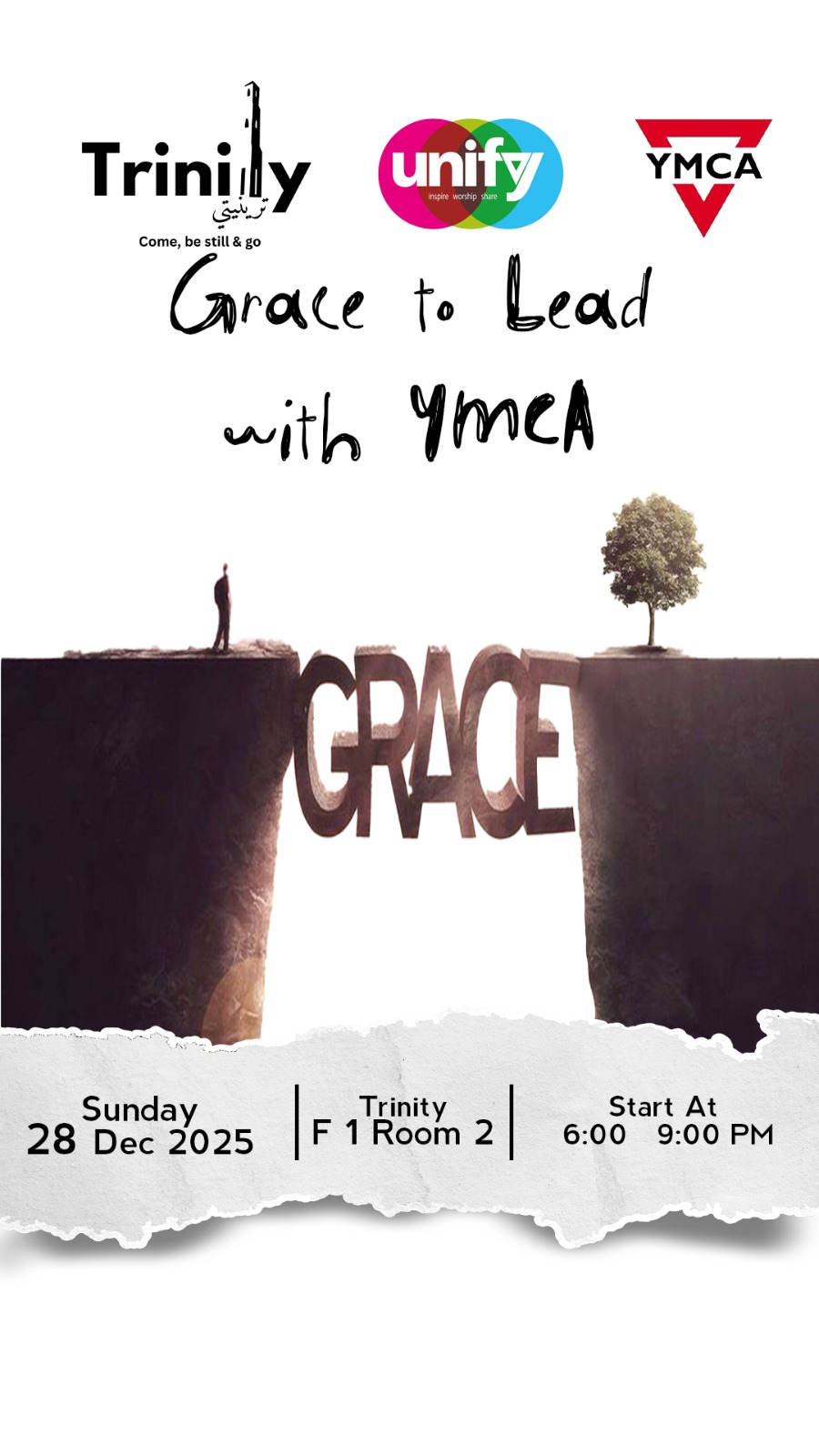 Date Sunday, 28Dec25 Sessions 1 Time 6pm to 9pm Location Trinity Fees Free Grace To Lead WorkshopTrinity invites you to join the introductory session for our partnership with YMCA and Trinity, held under the theme “Grace to Lead”Who is the YMCA?YMCA is an international Christian youth organization founded in 1844 in London, with the aim of […]